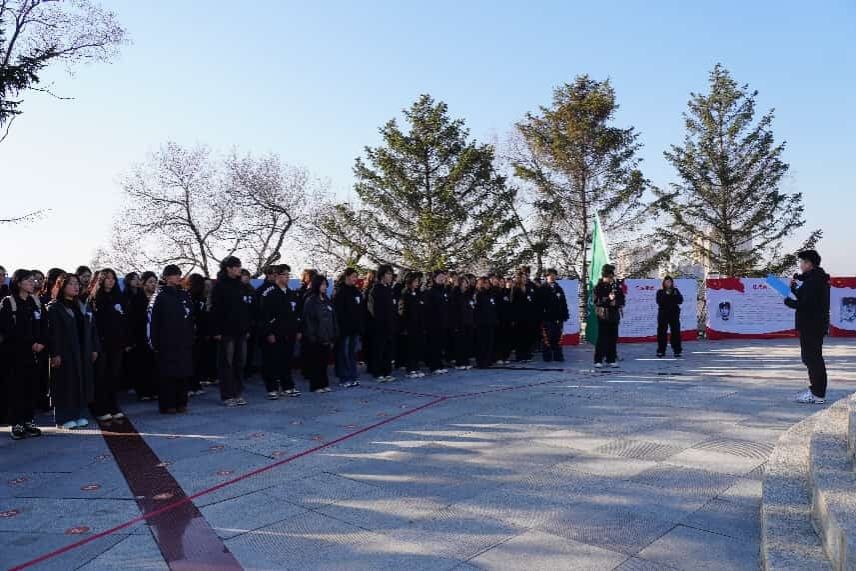 松柏苍翠寄哀思,鲜花静祭慰英魂。活动在肃穆的《烈士纪念日号角》声中拉开序幕,全体师生奏唱国歌,在烈士纪念碑前静肃默哀,向革命先烈致以崇高的敬意与深切的缅怀。艺术学院学生会主席团成员李硕发表感言,饱含深情地追忆革命先辈们不畏艰险、浴血奋战、无私奉献的峥嵘岁月,讲述英烈们坚守理想、践行初心、不怕牺牲的英雄事迹,号召全体青年学子铭记历史、传承英烈精神、扛起时代责任。活动最后,全体师生向烈士进献白花,以此表达对英烈们的崇敬与追思之情。