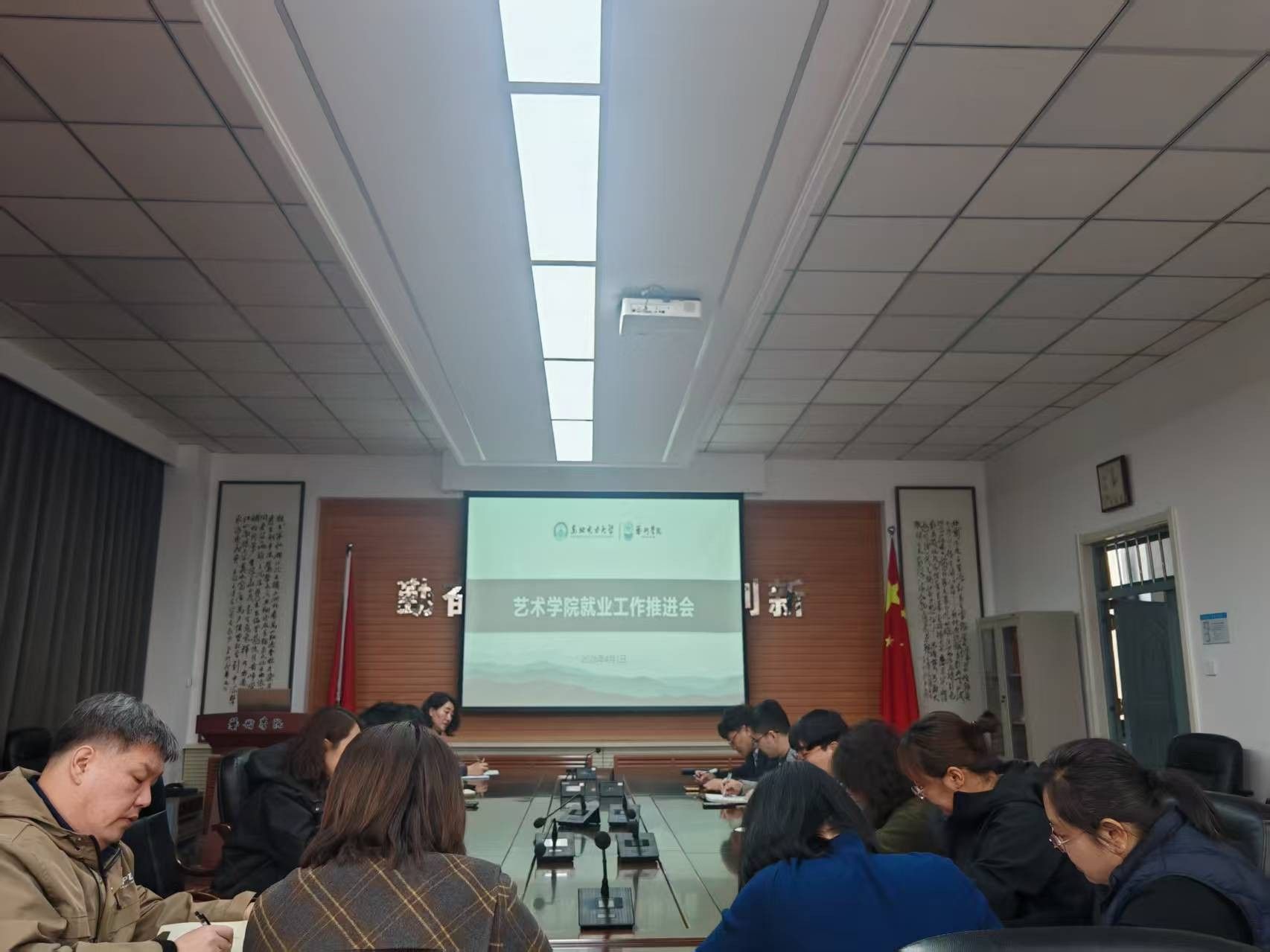 为深入分析当前就业工作形势,全面部署和推进学院2026届毕业生就业工作,确保就业工作目标任务顺利完成,艺术学院4月1日组织召开了2026届毕业生就业工作专题推进会。学院党委书记钟莉、院长宋德风、党委副书记刘畅出席会议并讲话。各系主任、专业负责人、毕业年级辅导员及全体班主任参加了会议。会议由学院党委副书记刘畅主持。